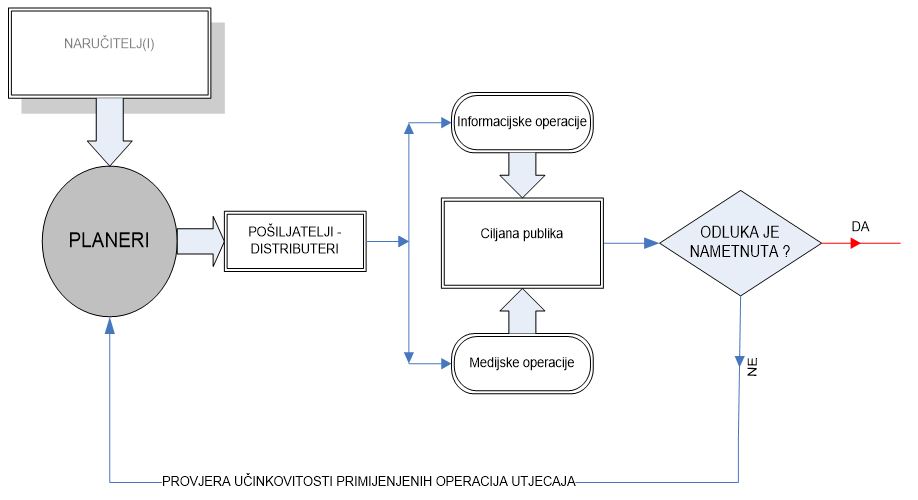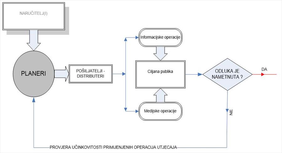 Naručitelji, planeri, distributeri i provoditelji plana dezinformiranja i plasiranja dezinformacija nisu i ne moraju biti iste osobe niti organizacije. Informacijskim operacijama (upravljanje informacijskim sadržajem) te medijskim operacijama (upravljanjem komunikacijskim kanalima) djeluje se prema ciljanoj publici. Korištenjem različitih mehanizama i modela može se, i treba, za postizanje optimalnih i traženih rezultata, pratiti reakcija publike izložene djelovanju dezinformacija. Ti se podaci i informacije koriste kako bi se prilagodile aktivnosti i procesi ulaznih vrijednosti sustava s ciljem postizanja tražene izlazne vrijednosti: prisiljavanja ciljane publike da donese odluke i ponaša se u skladu s planom i očekivanjima naručitelja dezinformacijskih procesa.