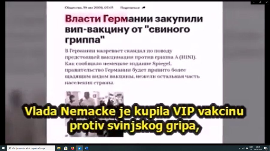 3. Spominje se vijest iz 2009. kad je „Vlada Nemacke kupila VIP vakcinu protiv svinjskog gripa“